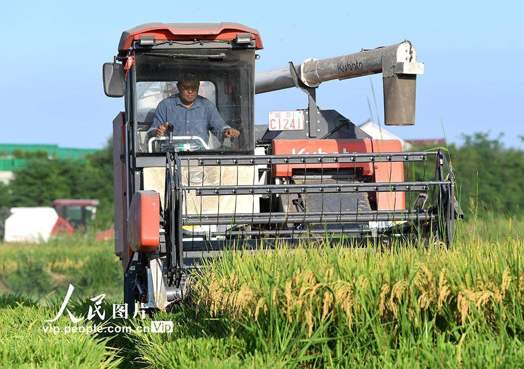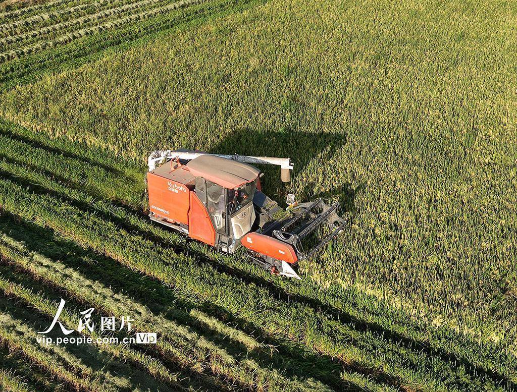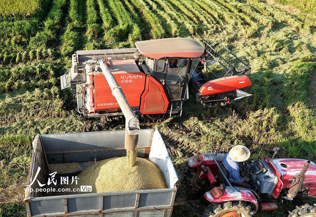初秋时节,安徽省巢湖市万亩再生稻陆续成熟迎来收割期,农户们抢抓晴好天气,开镰收割,确保颗粒归仓。近年来,安徽省巢湖市在“四新”技术的助力下,积极推广“再生稻”种植模式,实现“一种双收”,促进粮食增产丰收。马丰成摄(人民图片网)